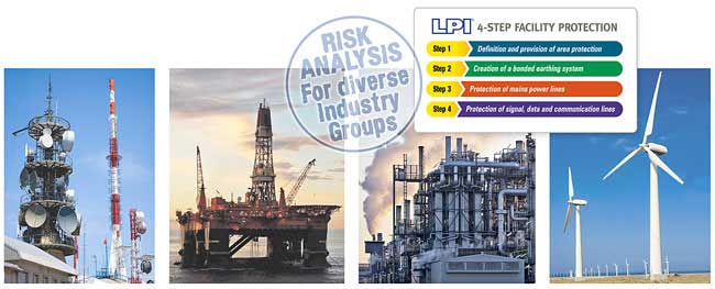 LPI has a proven history of working with diversified industry groups to evaluate and provide recommendations on specific lightning protection solutions. Through the application of the 4 Step Approach to lightning protection and in conjunction with the recommendations of International standards applicable to lightning protection our staff can assist you in offering a comprehensive solution to your lightning problems. Key parameters considered in the risk assessment of a modern facility would include: